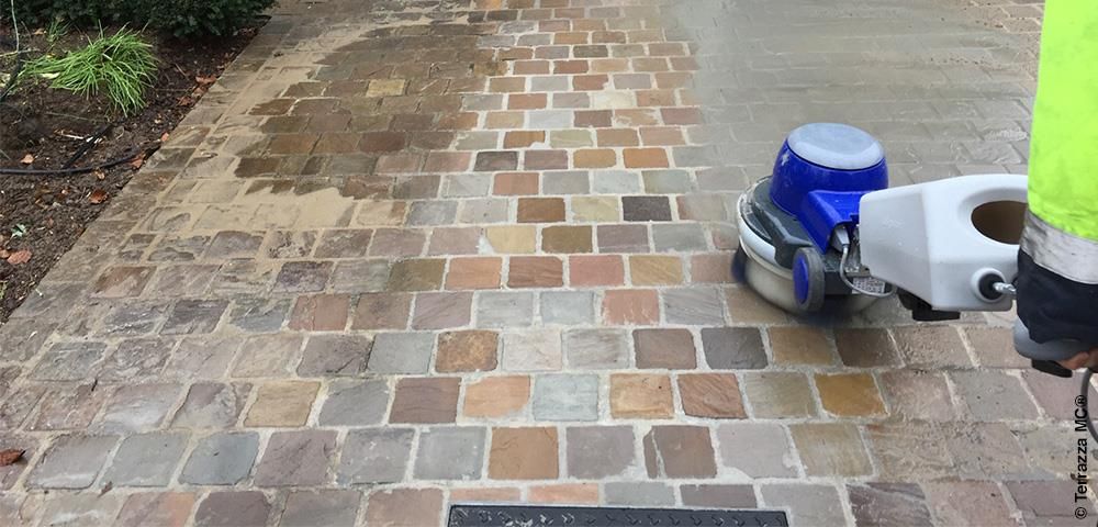 يتم استخدام آلة تنظيف فريدة من نوعها، والتي تستخدم تقنية تنظيف خاصة لجعل السطح نظيفًا بشكل مشع مرة أخرى.